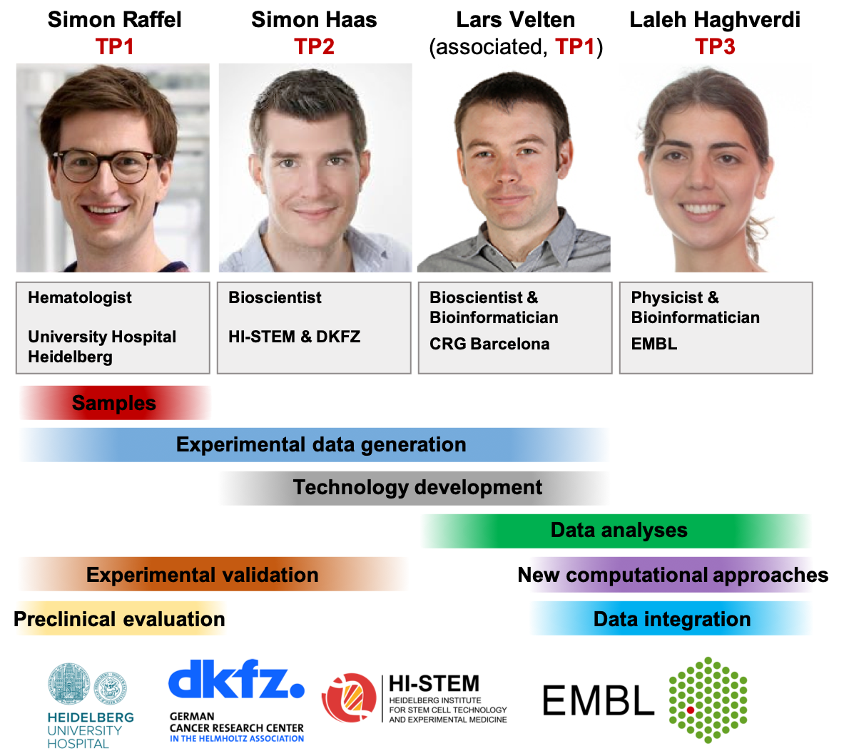 Konventionelle Technologien sind nicht in der Lage, sicher zwischen gesunden und leukämischen Stammzellen zu unterscheiden, und können die komplexen molekularen und zellulären Zusammenhänge der Erkrankung nicht adäquat darstellen. Gesamtziel dieses Vorhabens ist daher, durch die Anwendung neuartiger Analysemethoden auf Einzelzellebene sowohl Pathogenese als auch Therapieresistenzmechanismen bei Patienten mit AML gesamtheitlich und systemisch zu charakterisieren. Hierzu werden wir mittels Einzelzell-Genomik, Einzelzell-Transkriptomik, Einzelzell-Metabolismus und Einzelzell-Resistenztestung Oberflächenmarker, Gene und metabolische Eigenschaften mit Spezifität für LSCs identifizieren (TP1). Darüber hinaus werden wir mit Hilfe von Einzelzell- und räumlich-aufgelösten Analysemethoden das AML-Mikromilieu in der Stammzellnische charakterisieren (TP2). Zur Integration der verschiedenen Einzelzell-MulitOmics Daten aus TP1 und TP2 werden wir neuartige, Computer-gestützten Verfahren entwickeln (TP3) um so ein systemisches Verständnis des Zusammenwirkens multipler Faktoren bei Entstehung und Therapieresistenz der AML erlangen. Die gewonnenen Erkenntnisse sollen als Ausgangspunkt für die Entwicklung von Biomarkern und neuen Therapieansätzen verwendet werden mit dem Ziel, die Prognose von Patienten mit AML zu verbessern.